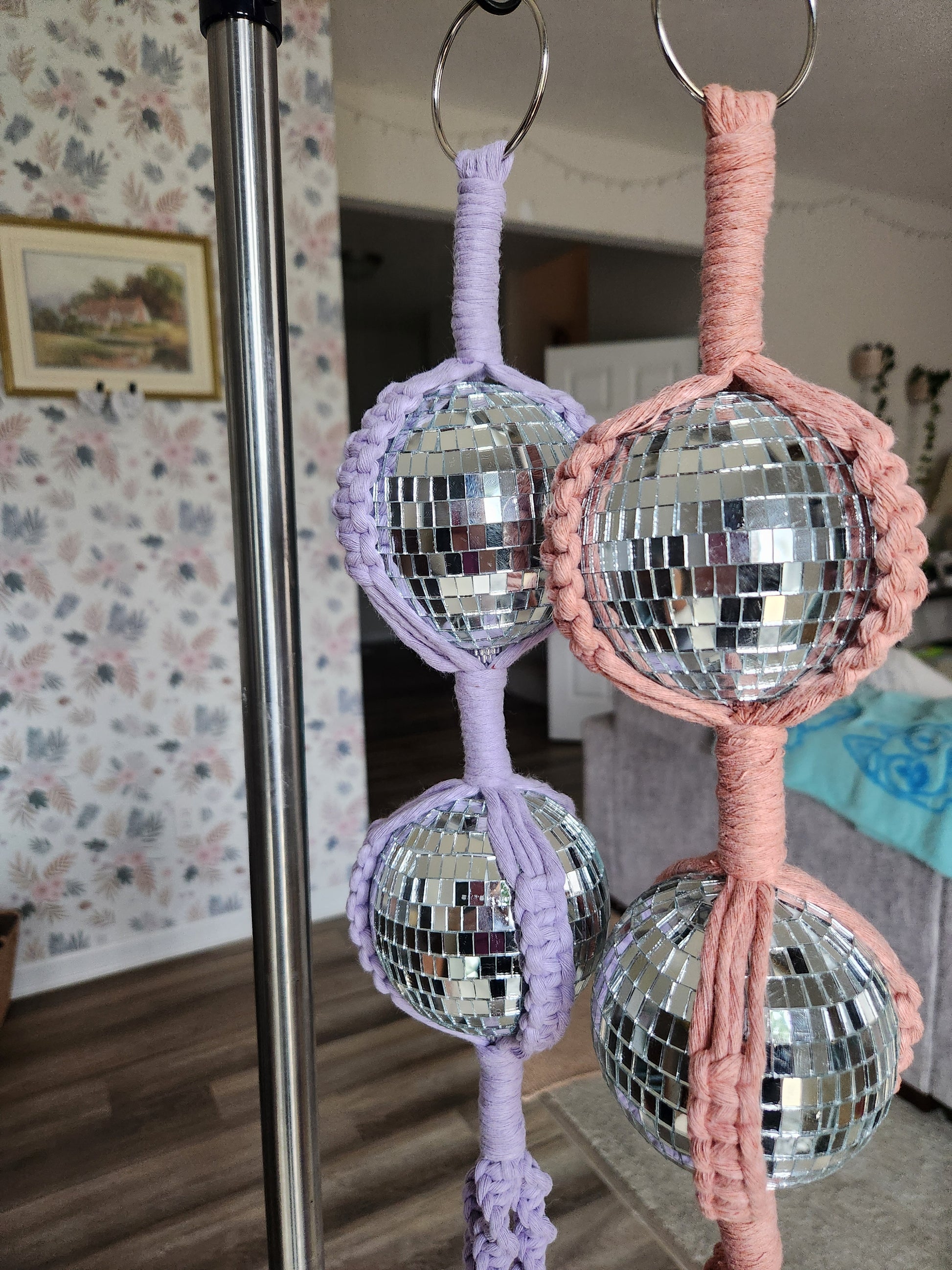 Handmade macrame disco ball hanger.
