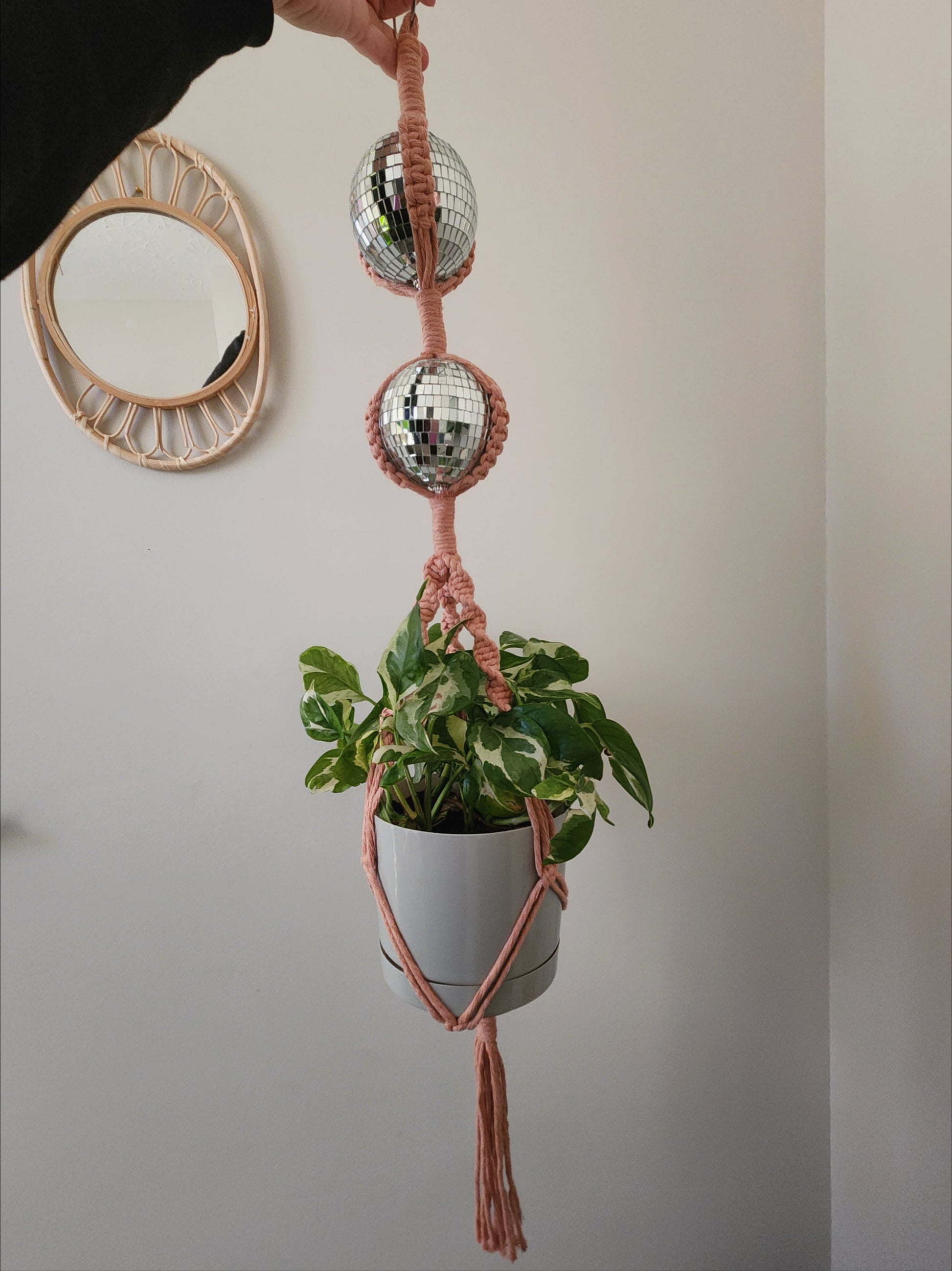 Handmade Macrame Disco Ball Plant Hanger